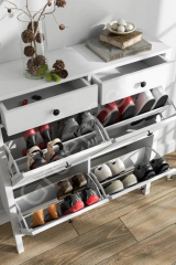 Helen Ayakkabılık 20049, 6 kapaklı beyaz tasarımıyla dar alanlara şıklık ve düzen kazandırır. Geniş iç hacmi ve modern detaylarıyla işlevselliği estetikle buluşturur.
