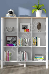 Helen Kitaplık 20072, modern ve minimal tasarımı ile dar alanlara zarif bir depolama çözümü sunar. Beyaz ve ahşap tonlarının uyumu ile sade dekorasyonlara şıklık katarken, kitaplarınız ve dekoratif objeleriniz için düzenli bir kullanım alanı sağlar
