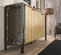 Independent 22046 Konsol, doğal meşe tonları ve siyah metal detaylarıyla modern, endüstriyel tarzı yaşam alanlarına taşıyor. Yan panellerindeki özel lazer kesim desenler, ürüne özgünlük katarken; 4 kapaklı geniş iç hacmiyle yüksek depolama alanı sunar.
